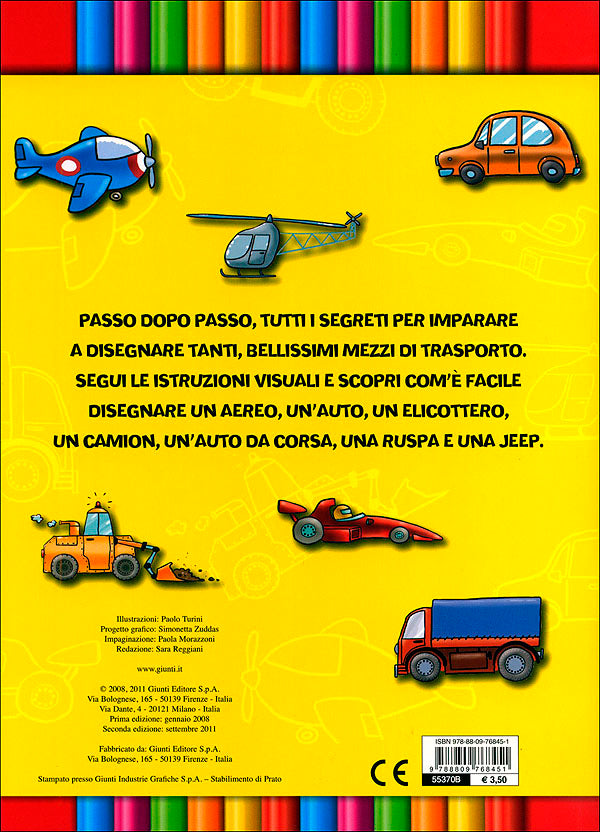 Ti piacciono i mezzi di trasporto, ma non sai come disegnarli? Niente paura! In questo albo troverai, passo dopo passo, tutte le istruzioni necessarie per disegnare le tue macchine preferite!
