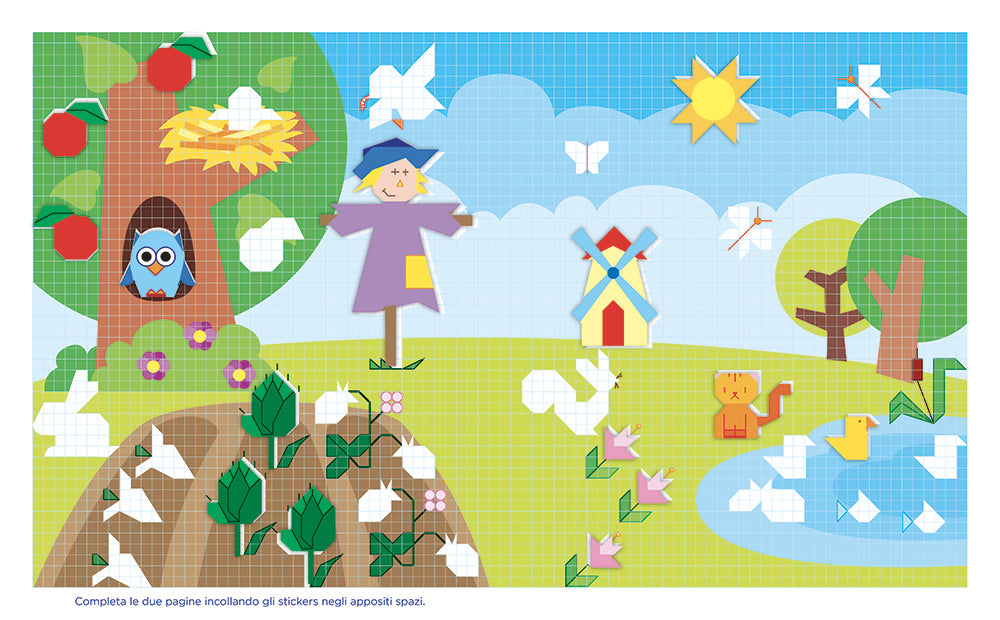 Questo libro propone tante cornicette su quadretti da 1 cm da completare e colorare. In più, tanti stickers per giocare!