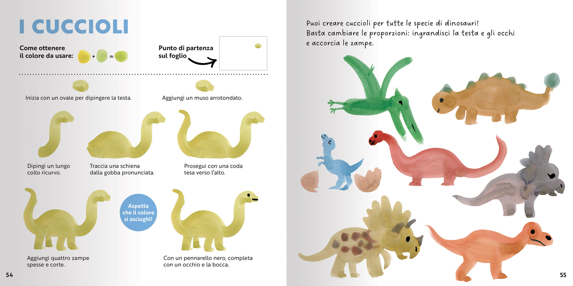 Un metodo semplice per creare dinosauri tutti colorati. Triceratopo, diplodocus, tirannosauro, velociraptor... Scopri 24 modelli di dinosauri ed elementi decorativi da dipingere passo dopo passo, con una moltitudine di possibili variazioni!