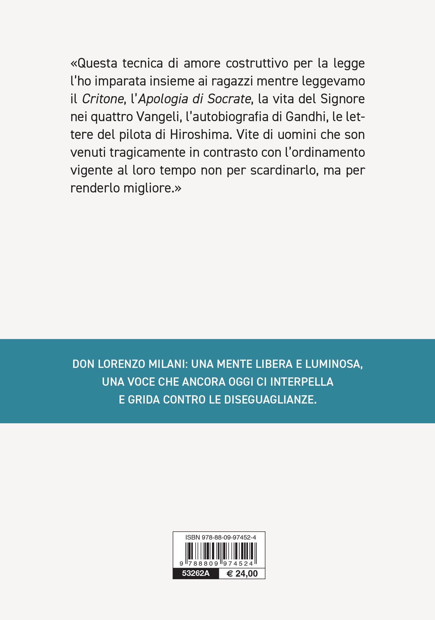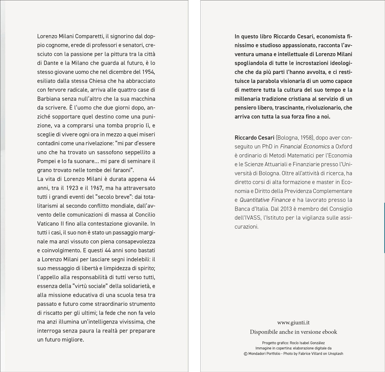 Lorenzo Milani Comparetti, il signorino dal doppio cognome, erede di professori e senatori, cresciuto con la passione per la pittura tra la città di Dante e la Milano che guarda al futuro, è lo stesso giovane uomo che nel dicembre del 1954, esiliato dalla stessa Chiesa che ha abbracciato con fervore radicale, arriva alle quattro case di Barbiana senza null’altro che la sua macchina da scrivere. È l’uomo che due giorni dopo, anziché sopportare quel destino come una punizione, va a comprarsi una tomba proprio lì, e sceglie di vivere ogni ora in mezzo a quei miseri contadini come una rivelazione: “mi par d’essere uno che ha trovato un sassofono seppellito a Pompei e lo fa suonare… mi pare di seminare il grano trovato nelle tombe dei faraoni”. La vita di Lorenzo Milani è durata appena 44 anni, tra il 1923 e il 1967, ma ha attraversato tutti i grandi eventi del “secolo breve”: dai totalitarismi al secondo conflitto mondiale, dall’avvento delle comunicazioni di massa al Concilio Vaticano II fino alla contestazione giovanile. In tutti i casi, il suo non è stato un passaggio marginale ma anzi vissuto con piena consapevolezza e coinvolgimento. E questi 44 anni sono bastati a Lorenzo Milani per lasciare segni indelebili: il suo messaggio di libertà e limpidezza di spirito; l’appello alla responsabilità di tutti verso tutti, essenza della “virtù sociale” della solidarietà, e alla missione educativa di una scuola tesa tra passato e futuro come straordinario strumento di riscatto per gli ultimi; la fede che non fa velo ma anzi illumina un’intelligenza vivissima, che interroga senza paura la realtà per preparare un futuro migliore. In questo libro Riccardo Cesari, economista finissimo e studioso appassionato, racconta l’avventura umana e intellettuale di Lorenzo Milani spogliandola di tutte le incrostazioni ideologiche che da più parti l’hanno avvolta, e ci restituisce la parabola visionaria di un uomo capace di mettere tutta la cultura del suo tempo e la millenaria tradizione cristiana al servizio di un pensiero libero, trascinante, rivoluzionario, che arriva con tutta la sua forza fino a noi. Riccardo Cesari (Bologna, 1958), dopo aver conseguito un PhD in Financial Economics a Oxford è ordinario di Metodi Matematici per l’Economia e le Scienze Attuariali e Finanziarie presso l’Università di Bologna. Oltre all’attività di ricerca, ha diretto corsi di alta formazione e master in Economia e Diritto della Previdenza Complementare e Quantitative Finance e ha lavorato presso la Banca d’Italia. Dal 2013 è membro del Consiglio dell’IVASS, l’Istituto per la vigilanza sulle assicurazioni. In questo libro Riccardo Cesari, economista finissimo e studioso appassionato, racconta l’avventura umana e intellettuale di Lorenzo Milani spogliandola di tutte le incrostazioni ideologiche che da più parti l’hanno avvolta, e ci restituisce la parabola visionaria di un uomo capace di mettere tutta la cultura del suo tempo e la millenaria tradizione cristiana al servizio di un pensiero libero, trascinante, rivoluzionario, che arriva con tutta la sua forza fino a noi.