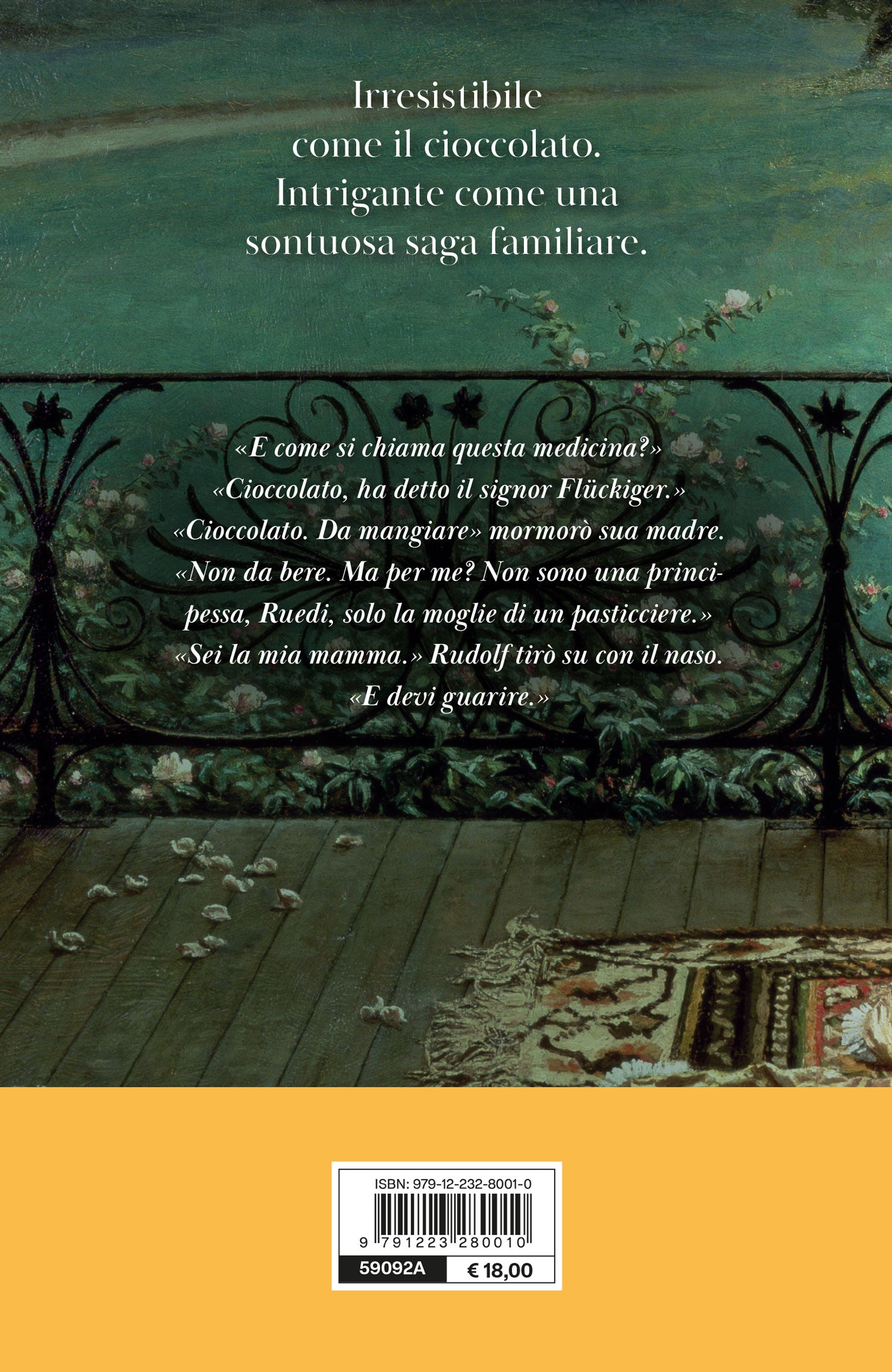 Zurigo, 1826. Il piccolo Rudolf è figlio di un pasticciere che da povero orfano di campagna si è recato in città, cercando la propria fortuna. Non ha ancora dieci anni, ed è disperato: sua madre è molto malata, e lui non sa come fare. Dando fondo a tutti i suoi pochi risparmi – e alle sue ormai ridotte, flebili speranze – decide di acquistare un rimedio dal signor Flückiger, il farmacista di Marktgasse. Con suo grande stupore, il bambino si vede consegnare un oggetto strano: una mistura di cacao cotta, solida, che in quel cantone della Svizzera non è ancora diffusa. È una tavoletta di cioccolato. Quasi per miracolo, subito dopo averlo assaggiato, la madre si riprende: recupera l’appetito e si rimette in forze. «È impossibile smettere» dirà al figlio. Da quel giorno, Rudolf, detto “Ruedi”, giura che diventerà un maestro del cioccolato. E non uno qualsiasi: il migliore. Ma non sarà semplice: per dare corpo ai suoi desideri e creare l’impero che già prende forma nella sua mente, avrà bisogno di quanta più conoscenza e aiuto possibile. Non da ultimo, quello di Katharina, incontrata sul lago di Lucerna quando entrambi erano bambini. Il sentimento che prova per lei è assoluto. La giovane, però, sta per andare in sposa a qualcun altro… Basteranno l’ambizione indefessa, l’ispirazione e il duro lavoro a creare il miglior cioccolato al mondo? E se qualcun altro, nel frattempo, nutrisse il suo stesso sogno?