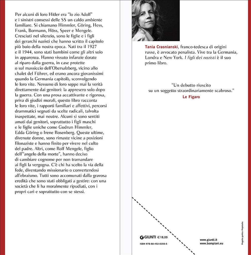 Per alcuni di loro Hitler era ''lo zio Adolf'' e i sinistri consessi delle SS un caldo ambiente familiare. Si chiamano Himmler, Göring, Hess, Frank, Bormann, Höss, Speer e Mengele. Cresciuti nel silenzio, sono le figlie e i figli dei gerarchi nazisti che hanno scritto il capitolo più buio della nostra epoca. Nati tra il 1927 e il 1944, sono stati bambini come gli altri solo in apparenza. Hanno vissuto infanzie dorate al riparo dalla guerra, in case protette o sul massiccio dell'Obersalzberg, vicino allo chalet del Führer, ed erano ancora giovanissimi quando la Germania capitolò, sconvolgendo le loro vite. Nessuno di loro seppe mai la verità direttamente dai genitori: la appresero solo dopo la guerra. Con una prosa accattivante e rigorosa, priva di giudizi morali, questo libro racconta le loro vite, i rapporti familiari e affettivi, percorsi drammatici segnati da scelte radicali, talvolta inaspettate, mai neutre. Alcuni si sono sentiti amati dai genitori, soprattutto i figli maschi e le figlie uniche come Gudrun Himmler, Edda Göring o Irene Rosenberg. Queste ultime, divenute donne, sono rimaste vicine a posizioni filonaziste e hanno finito per vivere nel culto del padre. Altri, come Rolf Mengele, figlio dell'''angelo della morte'', hanno deciso di cambiare cognome per non tramandare ai figli la vergogna. C'è chi ha scelto la via della fede, diventando missionario o convertendosi all'ebraismo. Tutti sono accomunati dalla gravosa eredità che sono stati obbligati a gestire: con una società che li ha moralmente ripudiati, con i propri cari e soprattutto con se stessi. Titolo originale: ''Enfants de nazis'' (2016).