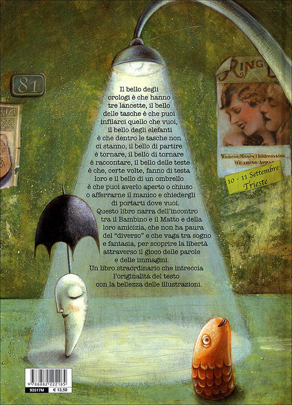 Un libro che narra dell'incontro tra il Bambino e il Matto e della loro amicizia, che non ha paura del ''diverso'' e che vaga tra sogno e fantasia, per scoprire la libertà attraverso il gioco delle parole e delle immagini.