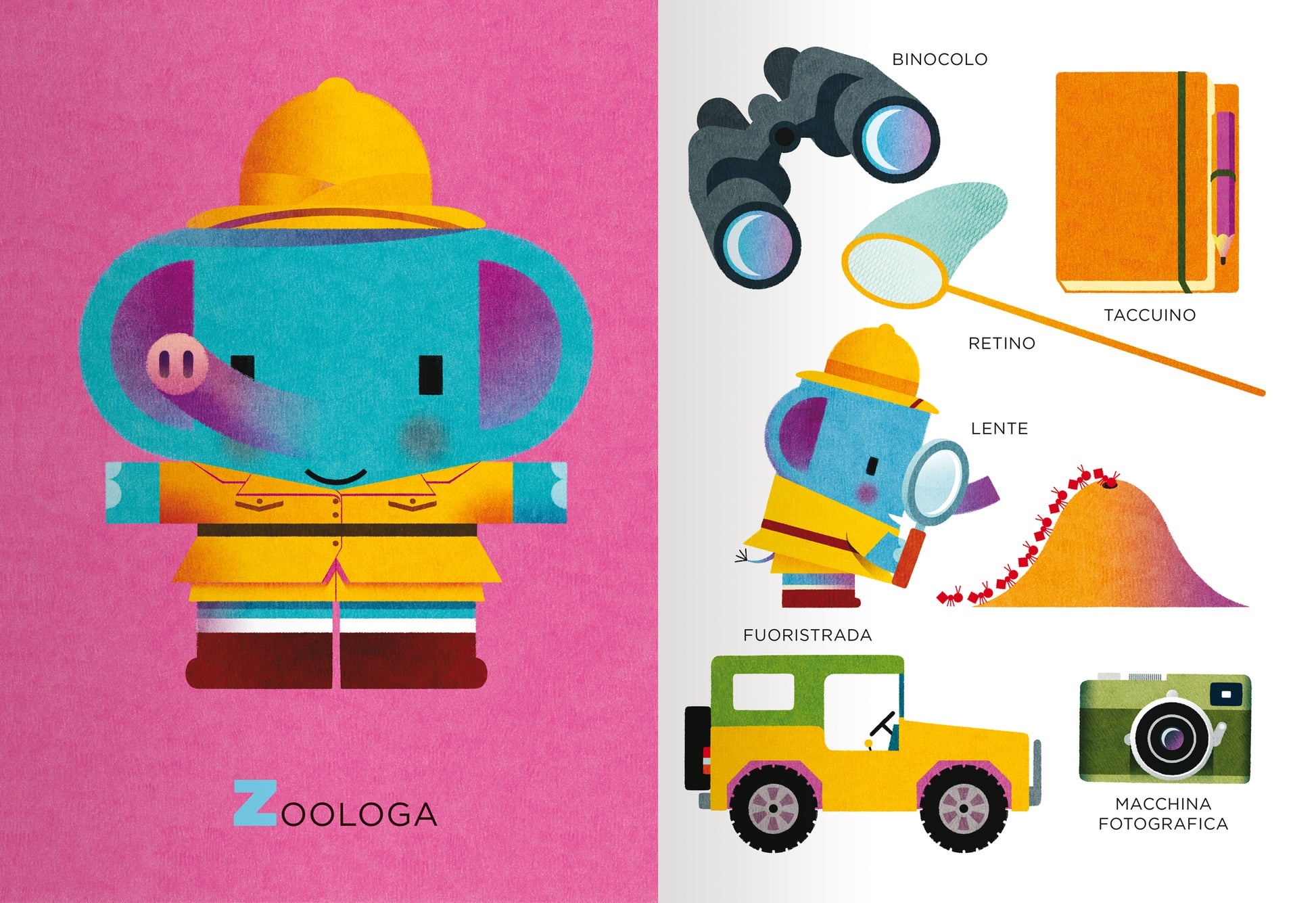 Come si chiamano gli attrezzi del meccanico? Che cosa osserva la zoologa? Con cosa si veste l’astronauta?