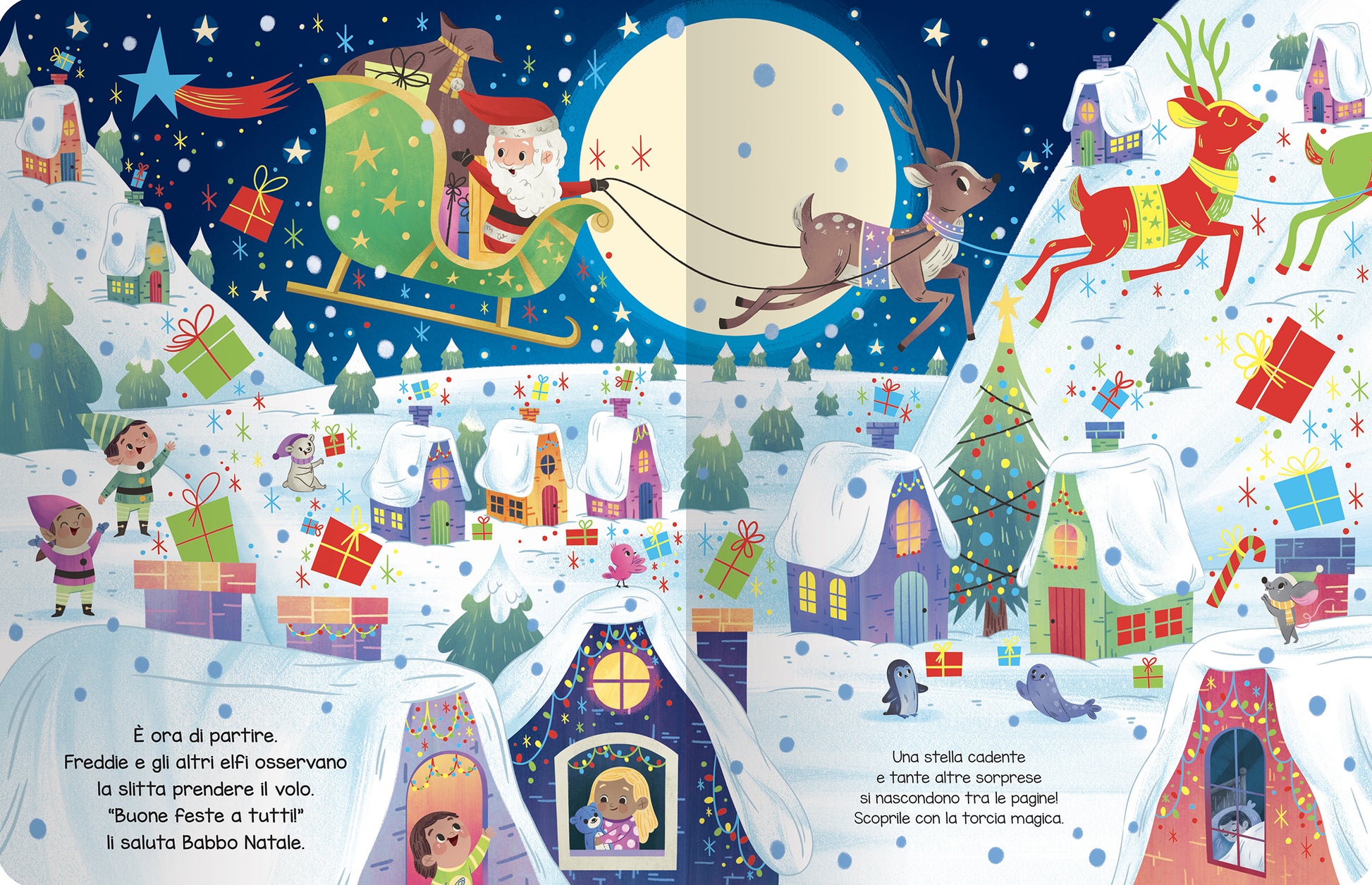 Un’emozionante avventura interattiva per rendere il Natale ancora più magico. Apri il libro, illumina le pagine del volume con la torcia e divertiti a scovare tanti personaggi ed elementi colorati nascosti nelle illustrazioni.
