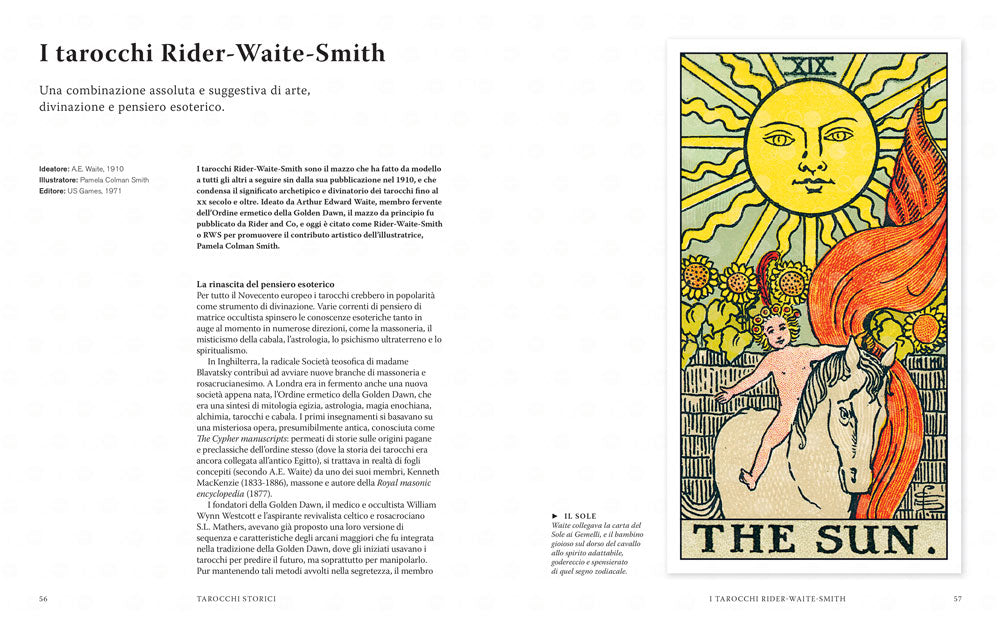 I tarocchi sono un tesoro ricco di simboli, prezioso per la divinazione e la conoscenza di sé. Ma chi li ha creati, e perché? Le loro origini risalgono all’antica sapienza esoterica o si tratta solo di un passatempo per appassionati dell’occulto? Come sono cambiati, nel corso del tempo, il significato e l’interpretazione di queste carte? Questo libro presenta 56 mazzi di carte unici e ricchi di significati: dai Visconti-Sforza, creati nel Rinascimento per celebrare due dinastie storiche, ai Sola Busca, con il loro codice alchemico; dai celebri Rider-Waite-Smith ai mazzi più moderni e innovativi. Un libro perfetto per collezionisti, appassionati di cartomanzia, amanti dell’arte, designer e chiunque voglia avvicinarsi al mondo magico e misterioso dei tarocchi.