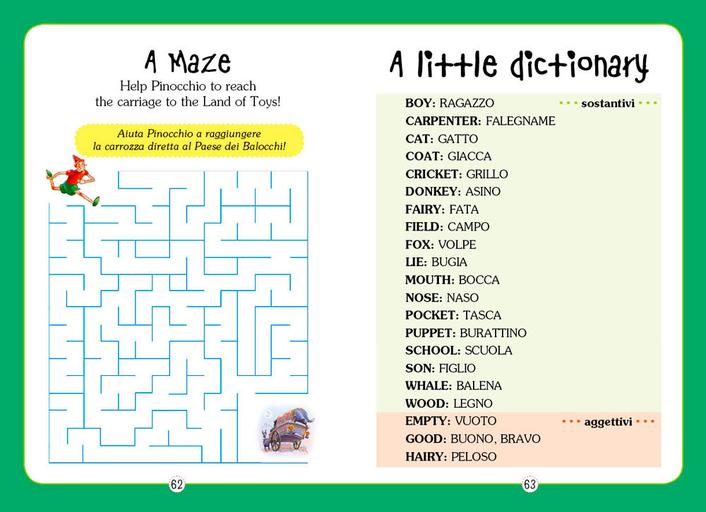 Testo in inglese con traduzione in italiano, un CD per imparare la pronuncia delle parole e tanti giochi divertenti per i più piccoli!